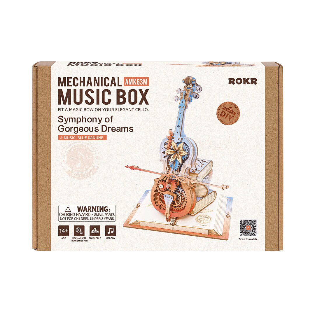 Objavte čaro klasickej hudby a precízneho remesla v jednom - Symfónia nádherných snov ROKR AMK63M je viac než len drevené puzzle. Je to umelecké dielo, ktoré spája eleganciu violončela s mechanikou hudobnej skrinky a rozprávkovou atmosférou magickej knihy.