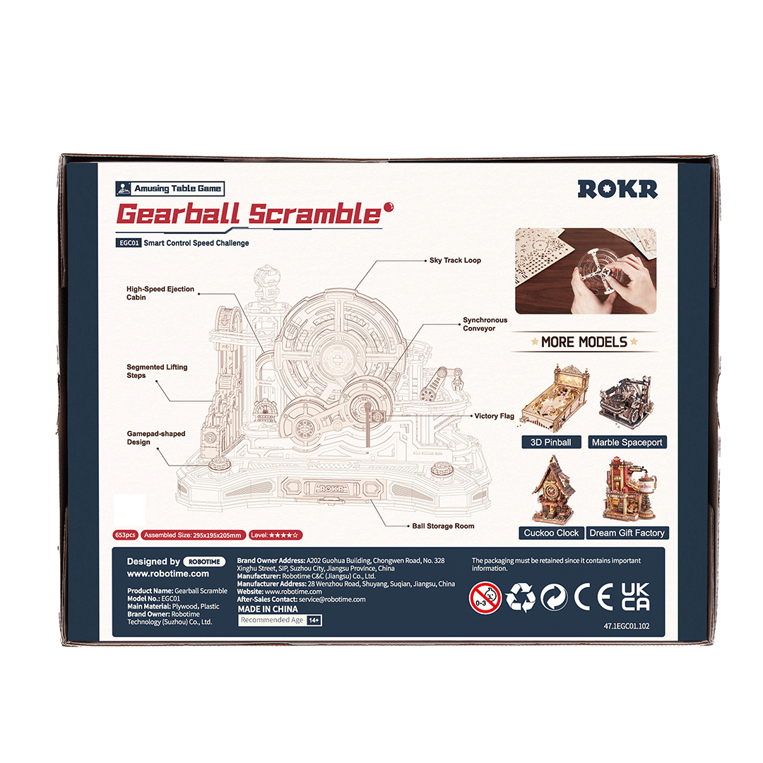 Objavte fascinujúci svet mechaniky s interaktívnym modelom ROKR Gear Ball Challenge EGC01 - jedinečným 3D dreveným puzzle, ktoré kombinuje precízne inžinierstvo, zábavu a edukáciu. Tento model je inšpirovaný tvarom herného ovládača a ponúka adrenalínový zážitok v podobe ručného ovládania kovových guličiek cez šesť dynamických úrovní plných prekážok, výťahov, výhybiek a skokov.