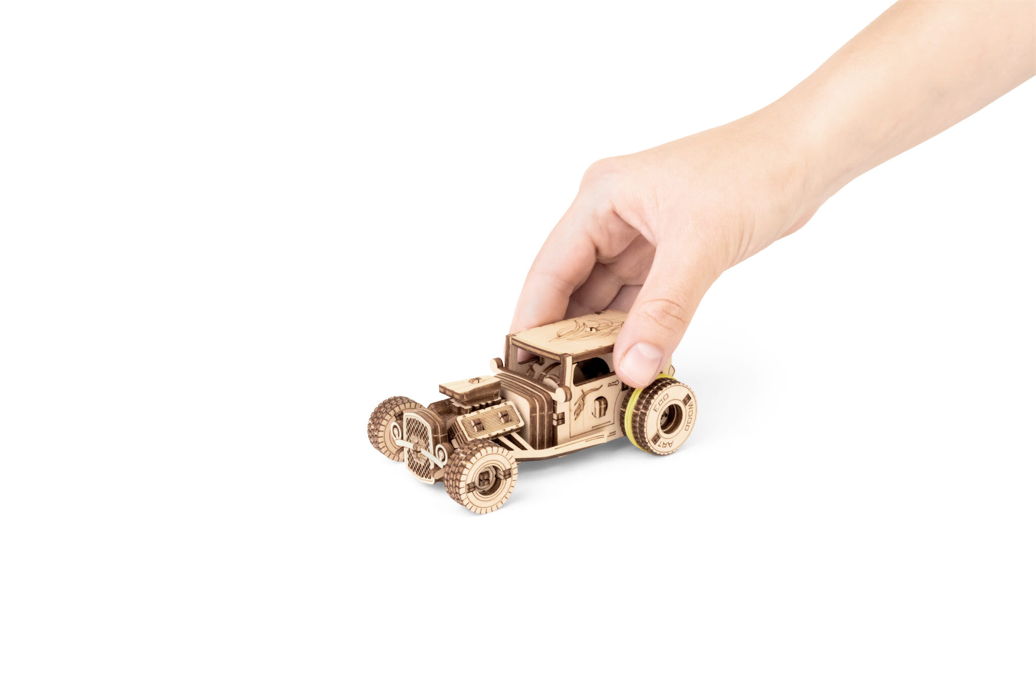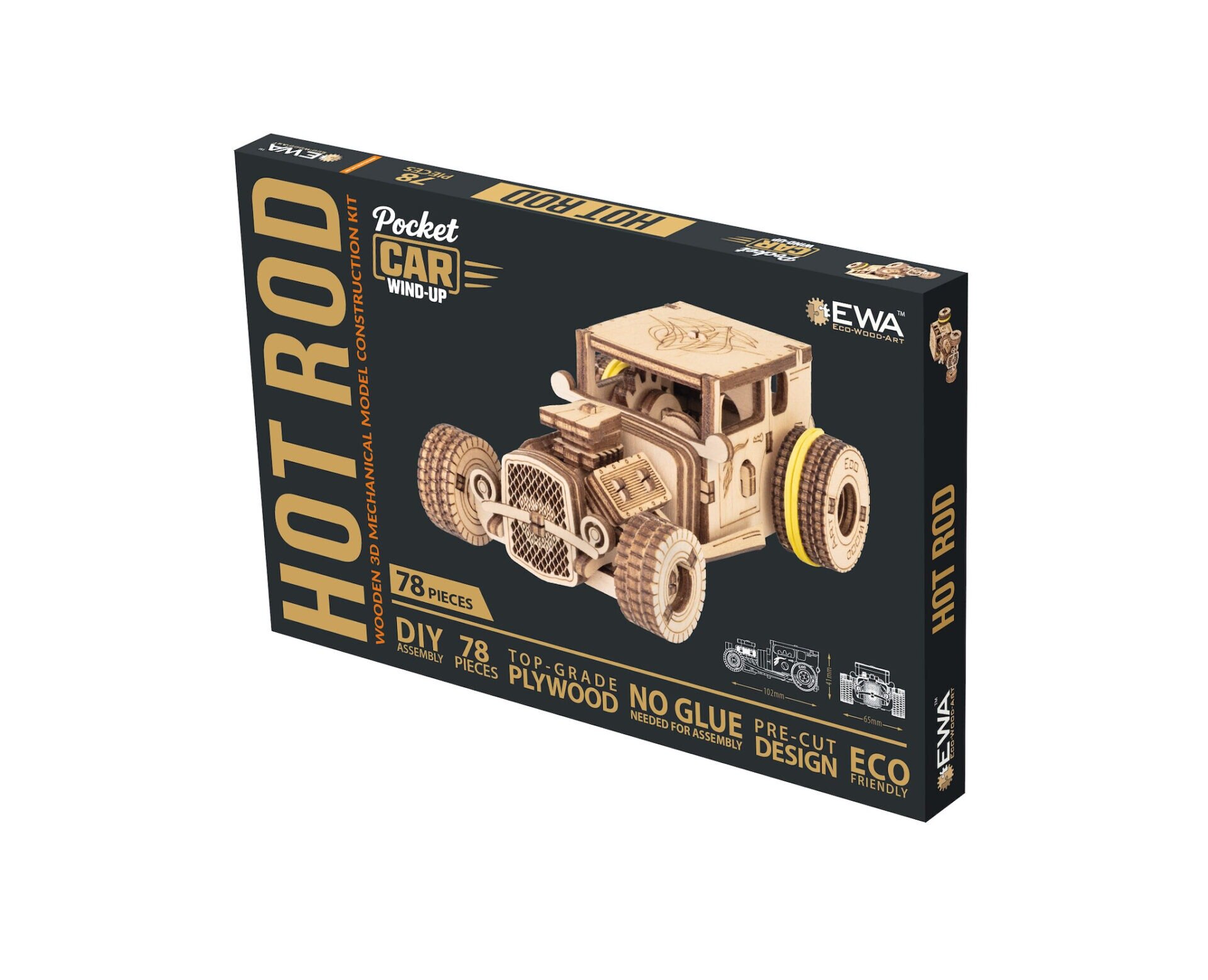 Drevený model Hot Rod zo série Pocket Car je malá konštrukčná skladačka, ktorá sa pohodlne zmestí aj do vrecka. Model nadväzuje na legendárnu estetiku Hot Rodov – ikonických upravených áut z 30.–50. rokov, ktoré sa stali symbolom rýchlosti, rebélie a americkej custom kultúry.