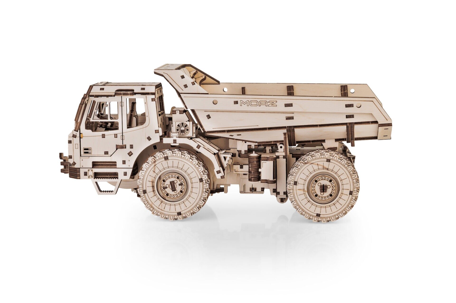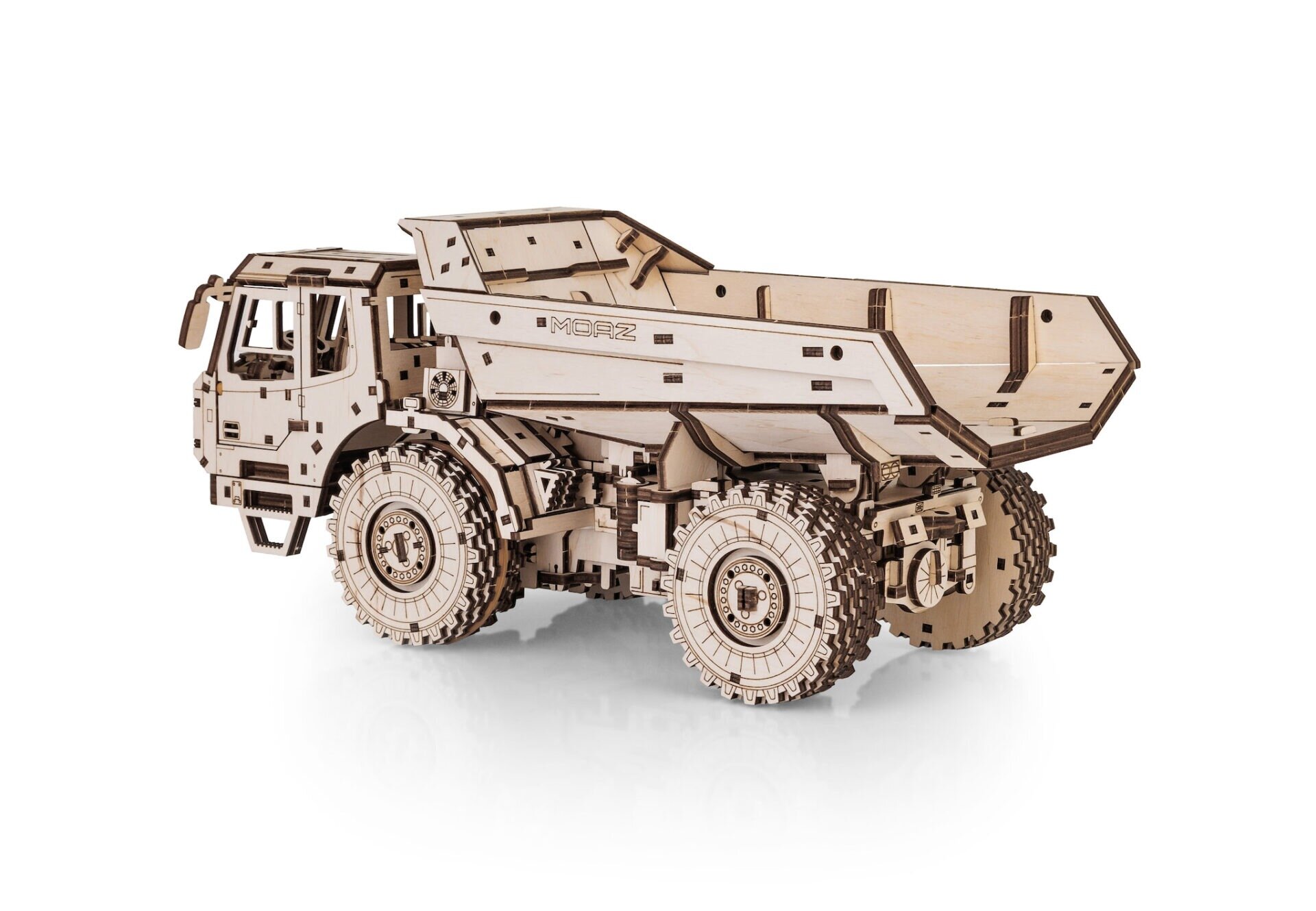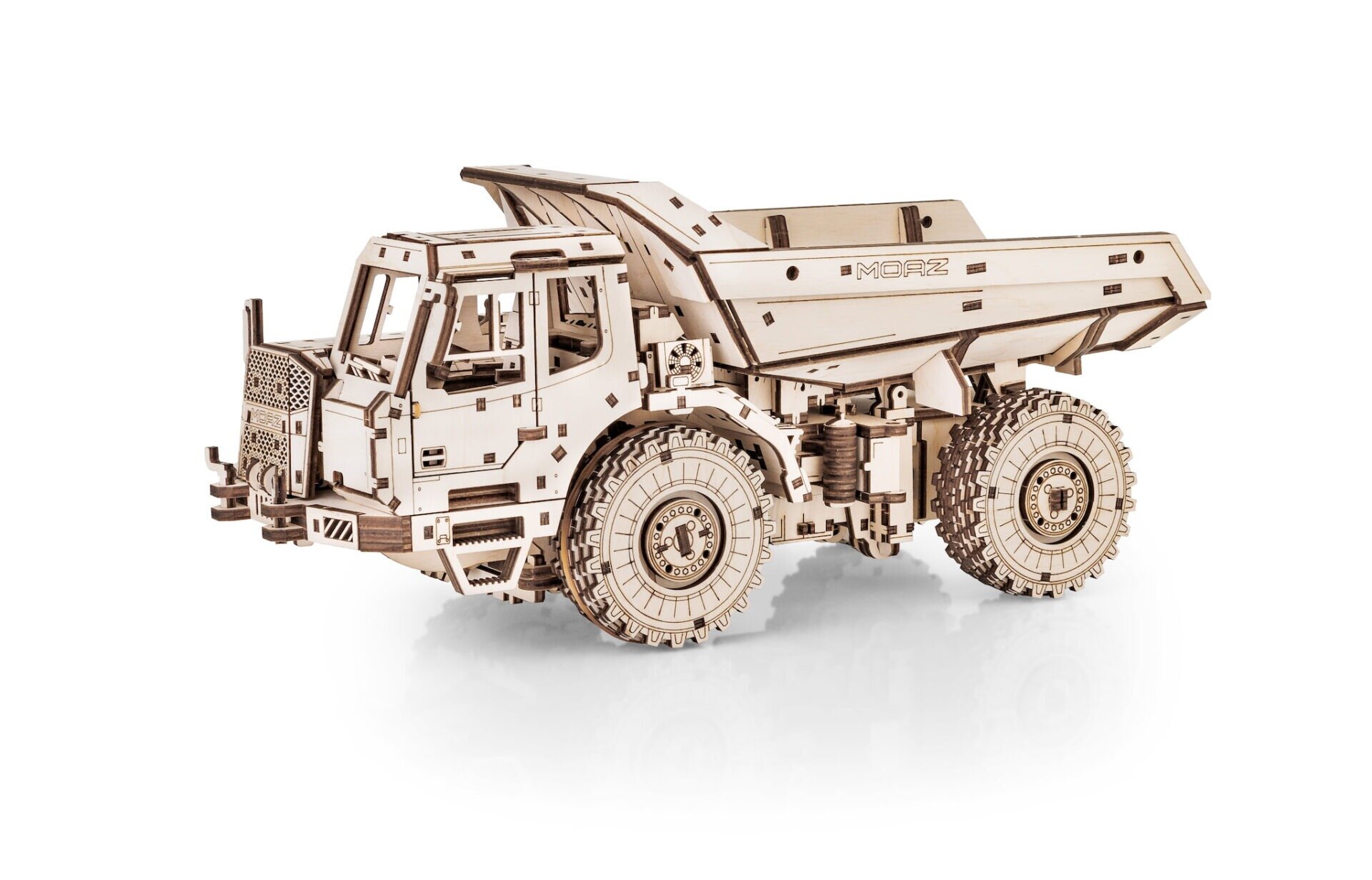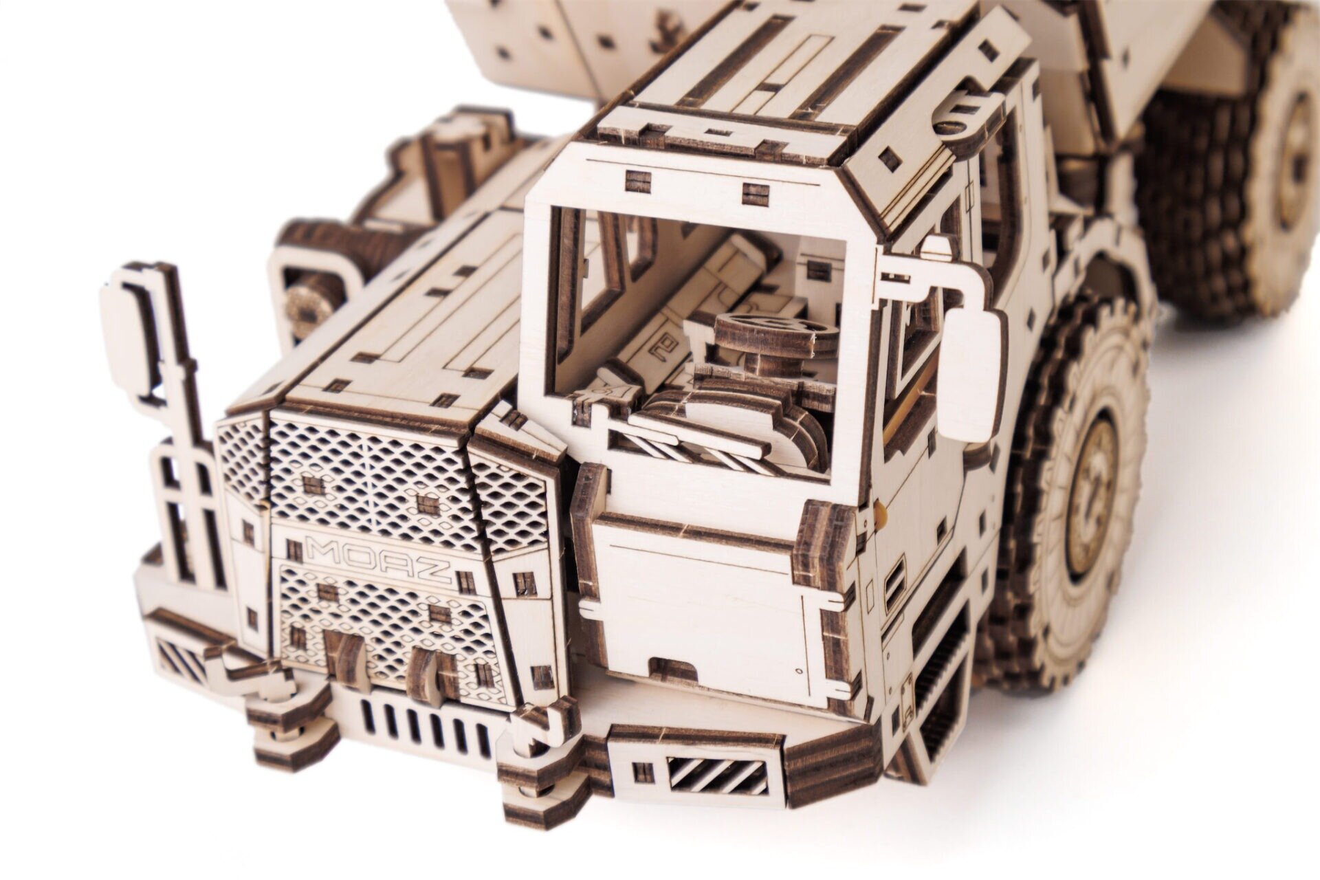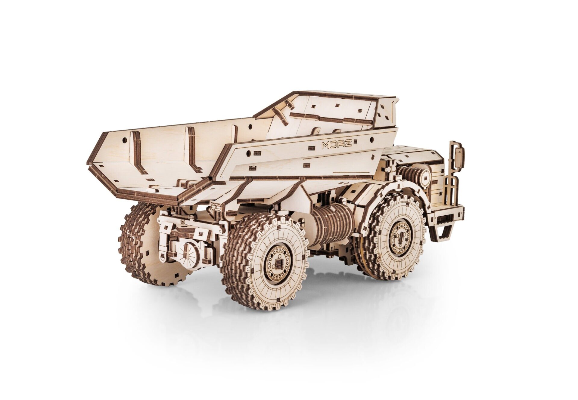 Drevený model MoAZ‑75053 predstavuje unikátnu kombináciu realistickej stavebnej techniky a precízne vyrezávaného dreveného puzzle. Tento pôsobivý zemný sklápač vznikol v spolupráci so svetovo známou značkou BELAZ, výrobcom skutočných ťažkých nákladných strojov, čo z modelu robí skutočne autentický zberateľský kúsok.